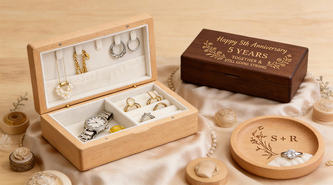 Jewelry Box Gift Set. Perfect for 5th anniversary and wedding gifts.