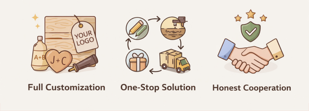 That belief shapes the way we work every day. We focus on custom wooden gifts and keepsakes, helping brands and sellers turn ideas into meaningful products.